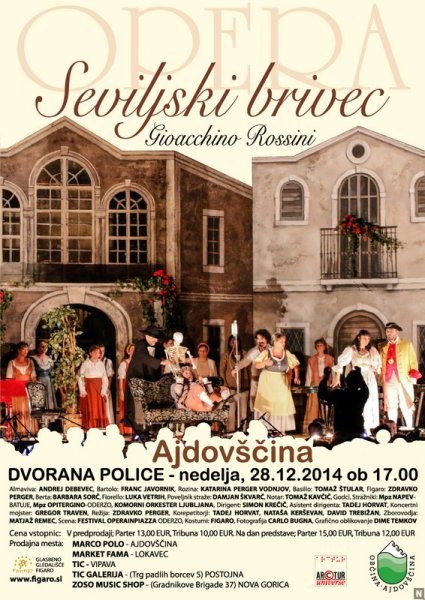 Operna predstava G.Rossini: Seviljski brivec v koprodukciji Festivala Operainpiazza iz Oderza (Tv) Italija v večnamenski dvorani Police v Ajdovščini 28.decembra 2014, ob 17,00